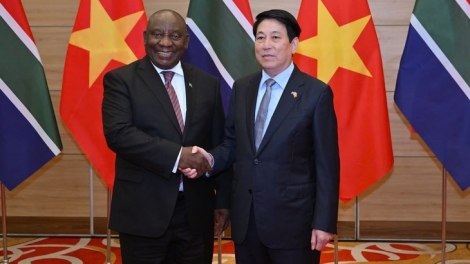 (VOVWORLD) - Los presidentes de Vietnam y Sudáfrica, Luong Cuong y Matamela Cyril Ramaphosa, acordaron elevar este año los vínculos entre los dos países al nivel de asociación estratégica, durante sus conversaciones oficiales de este jueves en Hanói.