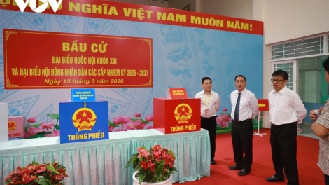 (VOVWORLD) - El presidente de la Asamblea Nacional de Vietnam y del Consejo Electoral Nacional, Tran Thanh Man, votó hoy en el colegio electoral número 14 de la comuna de Hoc Mon, en Ciudad Ho Chi Minh, para elegir a los diputados del Parlamento en su XVI Legislatura y a los miembros de los Consejos Populares de todos los niveles para el período 2026-2031.