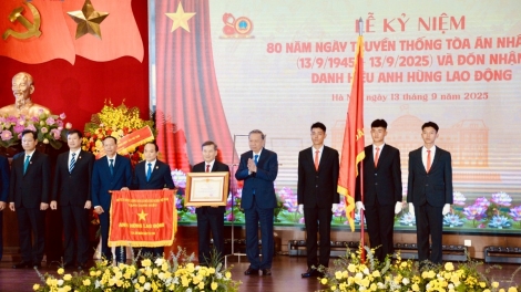 (VOVWORLD) - El secretario general del Partido Comunista de Vietnam, To Lam, destacó el papel importante de los tribunales populares en el contexto en que el país entra en el nuevo período de desarrollo, al intervenir hoy en la ceremonia de conmemoración del 80.º Día Tradicional del sector (13/9/1945 - 13/9/2025).