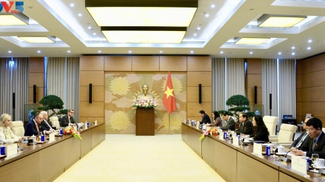 (VOVWORLD) - El presidente de la Asamblea Nacional de Vietnam, Tran Thanh Man, recibió hoy en Hanói, al primer vicepresidente del Parlamento de Grecia, Ioannis Plakiotakis, de visita oficial en el país. El dirigente vietnamita subrayó la relevancia política del encuentro y reafirmó la voluntad de profundizar la tradicional amistad y la cooperación multifacética entre ambos Estados.