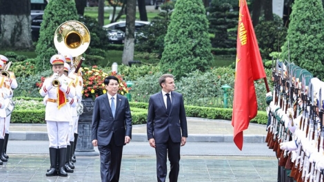 (VOVWORLD) - El presidente vietnamita, Luong Cuong, dio hoy en Hanói la bienvenida oficial a Emmanuel Macron, marcando el inicio de la visita de Estado del jefe de Estado francés a Vietnam, del 25 al 27 de mayo.