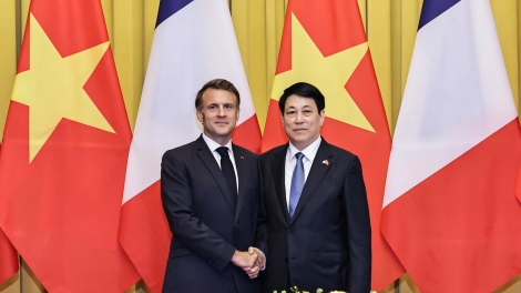 (VOVWORLD) - A mediodía de hoy, tras la celebración de conversaciones oficiales, el presidente de Vietnam, Luong Cuong, y su homólogo francés, Emmanuel Macron, ofrecieron una rueda de prensa conjunta para informar sobre los resultados alcanzados.