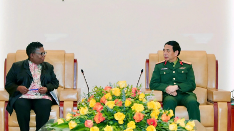 (VOVWORLD) - El general Phan Van Giang, miembro del Buró Político del Partido Comunista, vicesecretario de la Comisión Militar Central y ministro de Defensa de Vietnam, recibió hoy en Hanói a la secretaria general interina de Defensa de Sudáfrica, Thobekile Gamede.