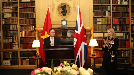 (VOVWORLD) - El embajador de Vietnam en el Reino Unido, Do Minh Hung, presentó ayer sus cartas credenciales al rey Carlos III, quien manifestó su respaldo a la cooperación entre ambos países en áreas como el intercambio cultural, la educación, la protección ambiental, el desarrollo sostenible y los proyectos de caridad en Vietnam. El monarca destacó los logros de la nación del sudeste asiático en su proceso de renovación y desarrollo, así como los avances en la Asociación Estratégica Vietnam-Reino Unido.