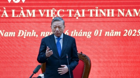 (VOVWORLD) - El secretario general del Partido Comunista de Vietnam (PCV), To Lam, en su reunión del jueves con el Comité Partidista de la provincia de Nam Dinh, pidió a esta localidad alcanzar un crecimiento económico de dos dígitos en 2025, además de cumplir o sobre cumplir todos los indicadores establecidos en su XX Congreso provincial del Partido, período 2020-2025.