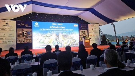 (VOVWORLD) - En continuación de su agenda en la provincia de Lao Cai, el primer ministro Pham Minh Chinh asistió a la ceremonia para iniciar el proyecto de construcción de viviendas sociales Golden Square, en el barrio de Bac Lenh, ciudad de Lao Cai, de la provincia homónima.