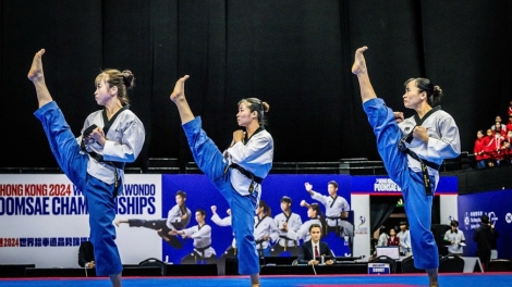 (VOVWORLD) - Las tres atletas del equipo de Taekwondo de Vietnam, que son Chau Tuyet Van, Nguyen Thi Le Kim y Lien Thi Tuyet Mai, derrotaron a las atletas coreanas para ganar la medalla de oro en la categoría equipo femenino estándar sub-50 en el Campeonato Mundial de Taekwondo 2024, que tiene lugar en Hong Kong (China).