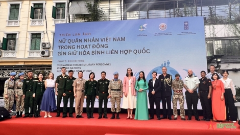 (VOVWORLD) - La exposición fotográfica "Mujeres soldados vietnamitas en las operaciones de mantenimiento de la paz de las Naciones Unidas" se inauguró este viernes en el Museo de la Mujer Vietnamita, en Hanói.