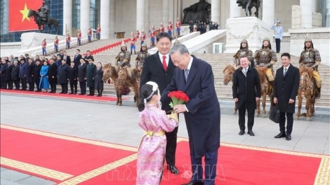 (VOVWORLD) - El lunes por la tarde se celebró en la plaza Sükhbaatar, Ulán Bator, una ceremonia de bienvenida de máximo protocolo para jefes de Estado, para el secretario general del Partido Comunista y presidente de Vietnam, To Lam, quien se encuentra en una visita de Estado a Mongolia.