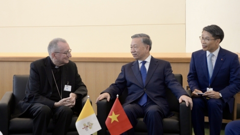 (VOVWORLD) - Con motivo de su asistencia a la Cumbre del Futuro de las Naciones Unidas y al debate general del 79º período de sesiones en Nueva York este domingo, el líder del Partido Comunista y del Estado de Vietnam, To Lam, se reunió con el secretario de Estado del Vaticano, cardenal Piertro Parolin.