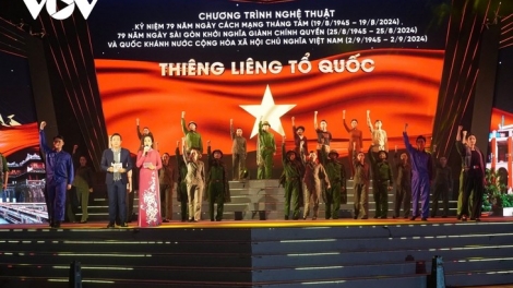 (VOVWORLD) - Anoche tuvo lugar el programa artístico "Patria Sagrada" que celebra el 79º aniversario del triunfo de la Revolución de Agosto (19 de agosto de 1945) y el Día Nacional de Vietnam (2 de septiembre), en el distrito 1, Ciudad Ho Chi Minh.