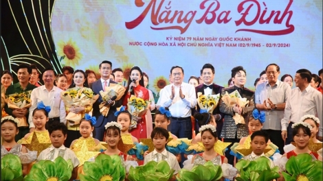 (VOVWORLD) - El programa artístico especial "Nang Ba Dinh" (El Sol en la plaza de Ba Dinh), celebrado por el periódico “Dai bieu Nhan dan” (Diputados del Pueblo), con motivo del 79.º aniversario del Día de la Independencia de Vietnam (2 de septiembre de 1945 - 2 de septiembre de 2024), tuvo lugar la víspera en la Ópera de Hanói con la asistencia del presidente del Parlamento, Tran Thanh Man.