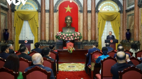 (VOVWORLD) - El secretario general del Comité Central del Partido Comunista y presidente de Vietnam, To Lam, sostuvo esta tarde en el Palacio Presidencial encuentros con la delegación de compatriotas participantes en la Cuarta Conferencia Mundial de Vietnamitas en el Extranjero y el Foro de Intelectuales y Expertos Vietnamitas en el Exterior 2024.