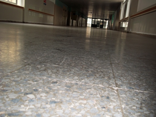 El piso original del pasillo central de la institución, colocado hace 45 años por constructores de la isla antillana. |
