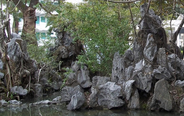 Para representar a la parte del Mar Caribe que baña al litoral sur de Cuba, desde Santiago hasta Granma, cubanos y vietnamitas idearon un lago artificial diminuto, y alzaron montañas en miniatura a partir de una orilla, con la porción mayor asentada en la tierra firme.