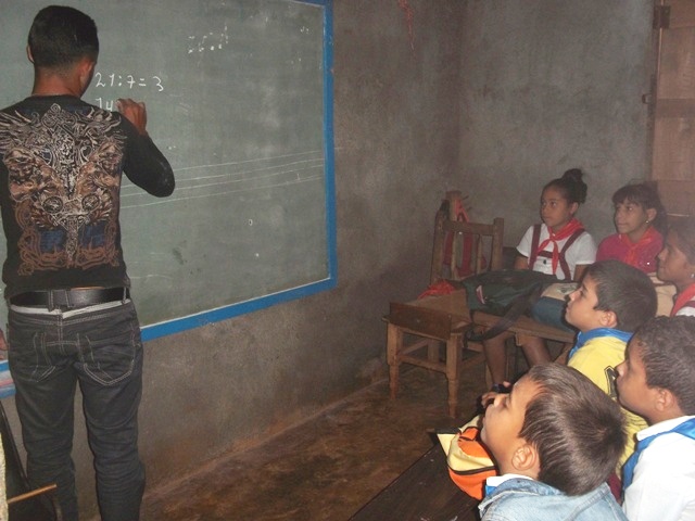 -Sí, es muy linda, le digo, mientras descubro la sonrisa cómplice de Evilmer Leyva, un maestro de 25 años de edad y seis en la profesión, quien explica detalles de las actividades docentes. Dice que “por las mañanas reciben clases de historia, lengua española, matemáticas, ciencias naturales y El mundo en que vivimos; las tardes se reservan básicamente para actividades recreativas, educación física y enseñanzas artísticas”.