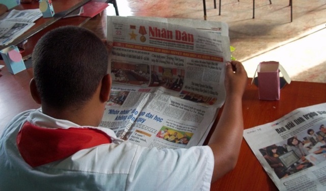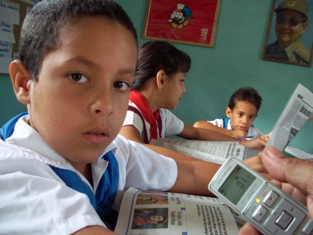 Ya en el interior del recinto, Evilmer distribuye entre sus alumnos unos periódicos vietnamitas que extrajo de una gaveta; orienta que los examinen página a página; los niños no pueden leer los textos escritos en el idioma del país asiático; pero se detienen en cada imagen, y buscan detalles para la conversación sobre el tema.