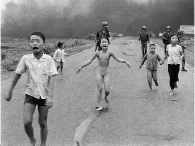 Como podemos apreciar. Aquí la palabra pasa a un lugar subalterno y es la imagen de una niña de nueve años de edad, totalmente desnuda llorando despavorida por una carretera sin saber a dónde ir, víctima de los efectos destructivos que posee el fuego del Napalm.