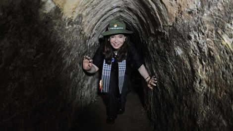 La Presidente argentina, Cristina Fernández de Kirchner, recorrió las míticas estructuras en las que se refugiaban las milicias del Vietcong durante la invasión de EEUU en las décadas del '60 y '70. "Los patriotas son casi iguales en todas partes", dijo.