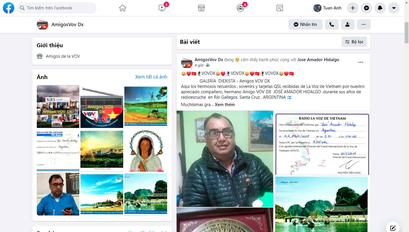 La interfaz de la página de Facebook Amigos VOV DX |