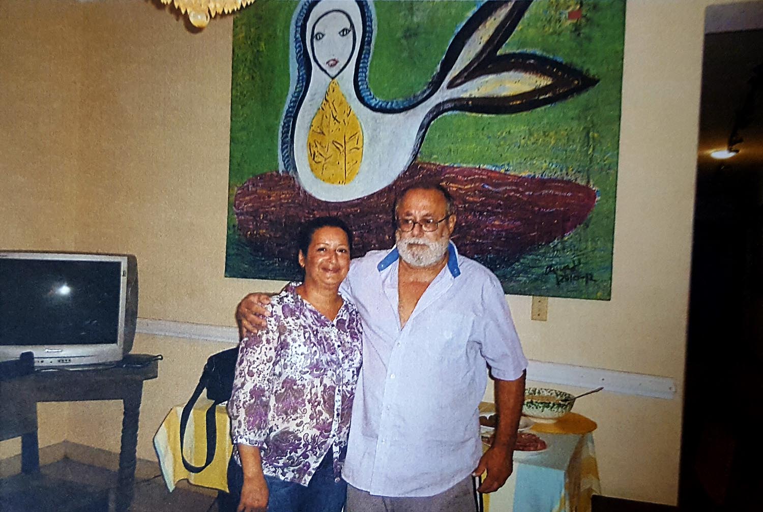 ![]() El oyente cubano, Juan Ruiz Gómez y su hija en el comedor de su casa