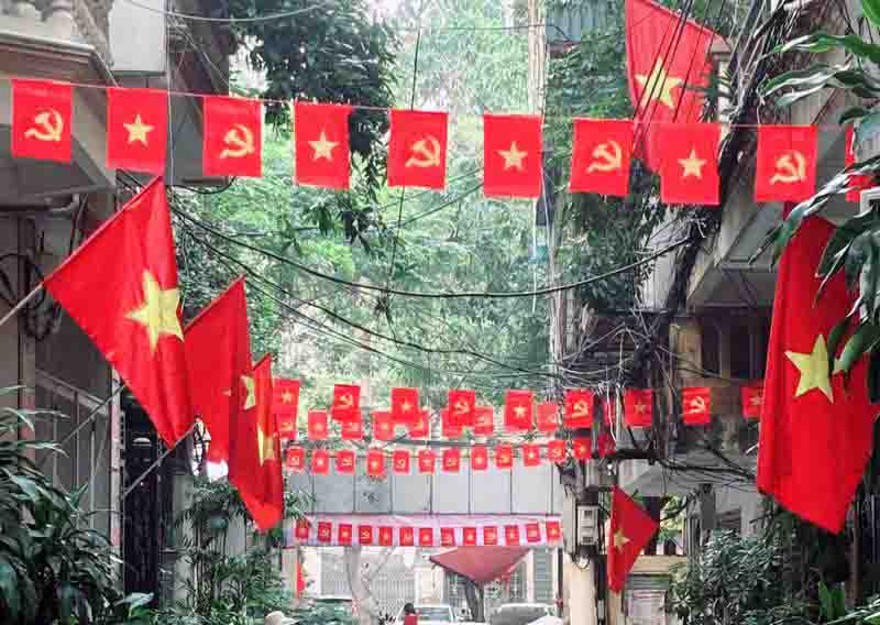 Ciudadanos vietnamitas cuelgan la bandera roja para dar la bienvenida al año nuevo 2025. (Foto:vneconomy.vn) |