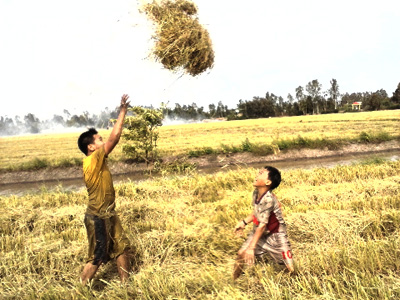 Alegría de un campesino y su hijo por una buena cosecha