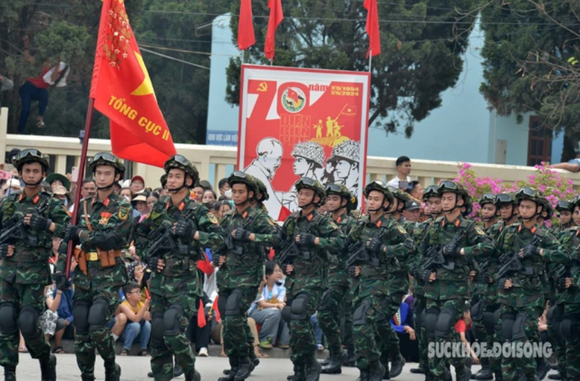 El desfile cívico-militar en conmemoración del 70 aniversario de la victoria de Dien Bien Phu del ejército y pueblo de Vietnam. (Foto: Periódico Salud y Vida) |