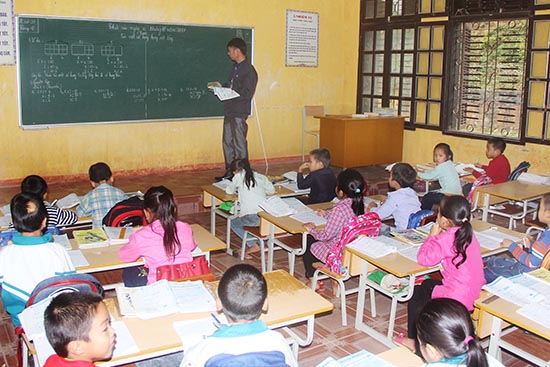 Vietnam cuenta con casi 1,5 millones de maestros. En la foto: Una clase primaria en zonas remotas en Vietnam. |