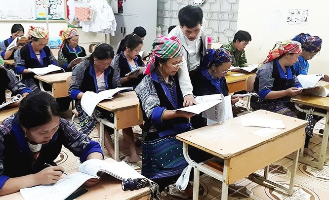 Una clase de alfabetización en Than Uyen (provincia de Lai Chau). |