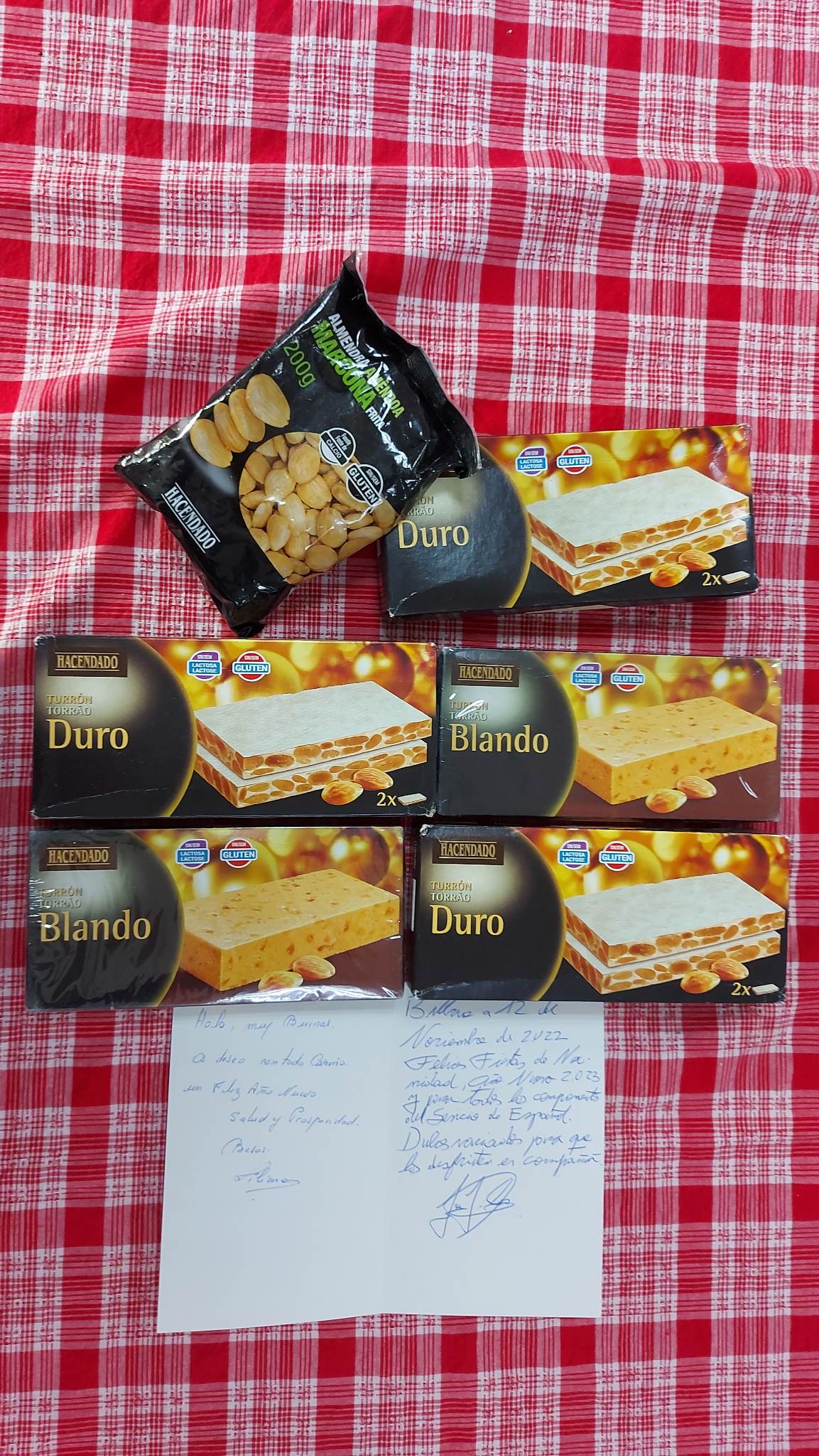 Especialmente, hemos recibido un regalo del hermoso municipio de Bilbao, en España, con mucho cariño de parte de José Ignacio Cos Lezama y su esposa Liliane. El paquete contiene una postal de Navidad, turrones elaborados con almendra, típicos de España en las fiestas navideñas y el Año Nuevo. Aunque no es la primera vez que recibimos este regalo tan dulce por parte de José y Liliane, aún nos conmueve y sorprende el cariño que la pareja nos presta a lo largo de los años.