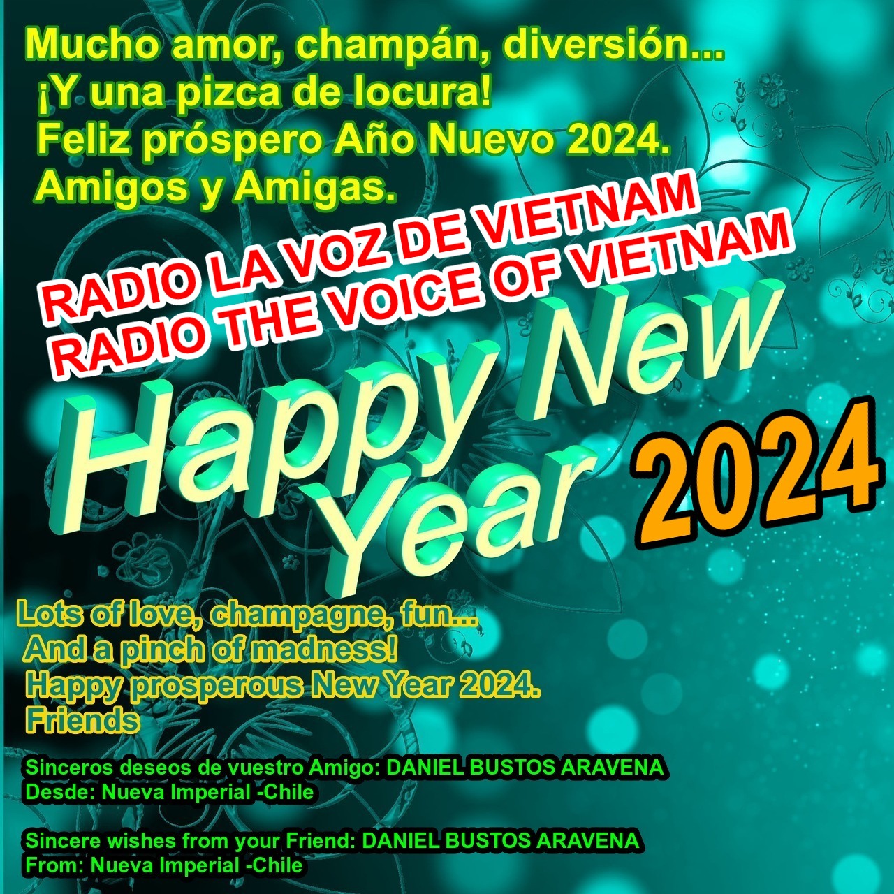 ¡Qué emoción volver a recibir tus noticias, Daniel, después de tantos años! Han transcurrido casi 30 años y aun optas por acompañarnos. ¡Muchas gracias! Esperamos que el año 2024 te traiga salud, suerte y muchas cosas buenas. También esperamos recibir más mensajes y reportes de escucha desde Nueva Imperial. Pronto te enviaremos una bonita tarjeta de confirmación QSL.