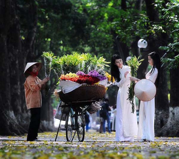 ![]() Muchachas vietnamitas compran flores en la calle de Hanoi