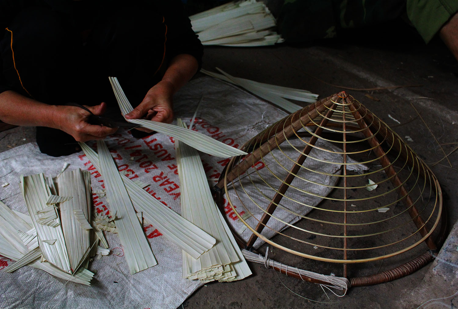 Alicia: Sí, Bosque. El “Non La” suele ser hecho con hojas de palma, bambú o pandan. Estas hojas cubren una armadura cómica que consta de pequeños listones de bambú sujetos con hilo, seda o monofilamento. Este tipo de sombrero a menudo viene con una correa hecha de tela suave, terciopelo o seda para sujetar en el cuello. Actualmente, aún existen algunos pueblos tradicionales de fabricación de “Non La”, como las aldeas de Dong Di, Da Le y Phu Cam (Thua Thien-Hue), la de Truong Giang (Thanh Hoa) y la de Chuong (Thanh Oai - Hanói).