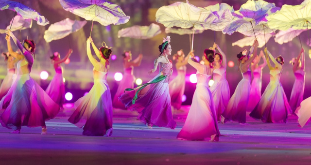 Un espectáculo artístico en el acto de inauguración de SEA Games 31 en el estadio nacional de My Dinh, en Hanói. (Foto: VOV) |