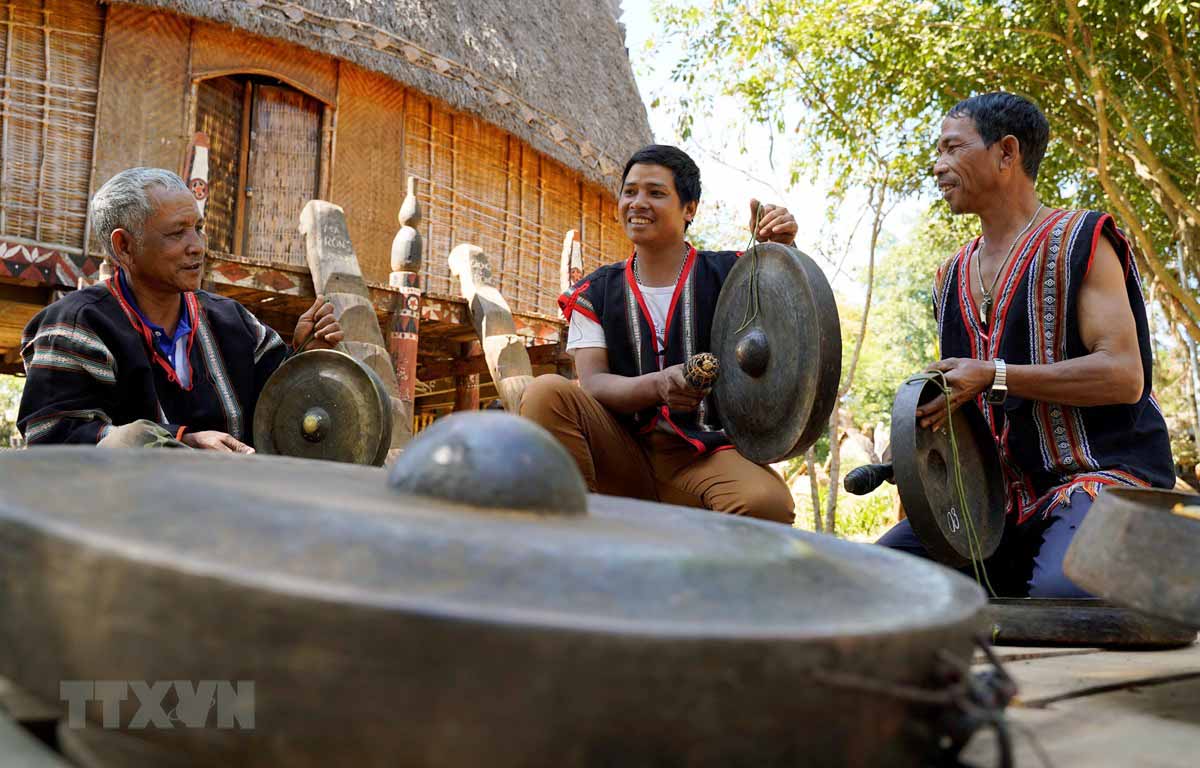 Artesanos de Tay Nguyen arreglan gongs y batintines para los festivales (Foto: VNA) |