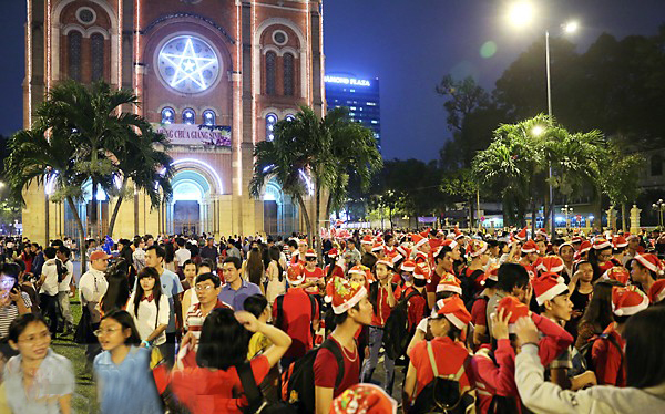 ![]() Pobladores de Ciudad Ho Chi Minh se congregan en la zona de la Catedral Basílica de Nuestra Señora de la Inmaculada Concepción para festejar la Navidad y saludar el Año Nuevo