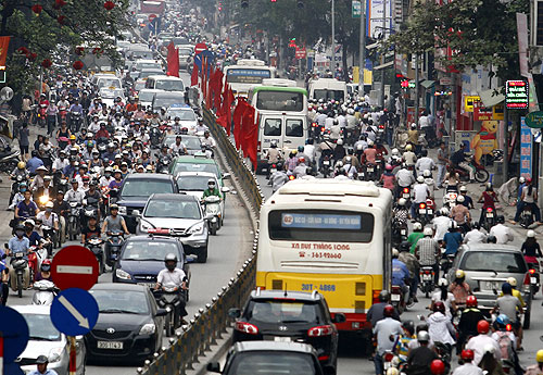 Los atascos representan un problema agudo para las grandes ciudades de Vietnam. Hanoi y Ciudad Ho Chi Minh, los dos principales centros urbanos, son los más afectados, debido a su alta densidad poblacional y la explosión de los medios de transporte individuales. La insuficiencia de sus sistemas infraestructurales tampoco responde al rápido incremento del número de vehículos en circulación. Trabajos independientes en las calles y actividades comerciales en las aceras también impiden el tránsito. Además, la inconciencia de ciertos sectores de la población influye en la cultura vial.