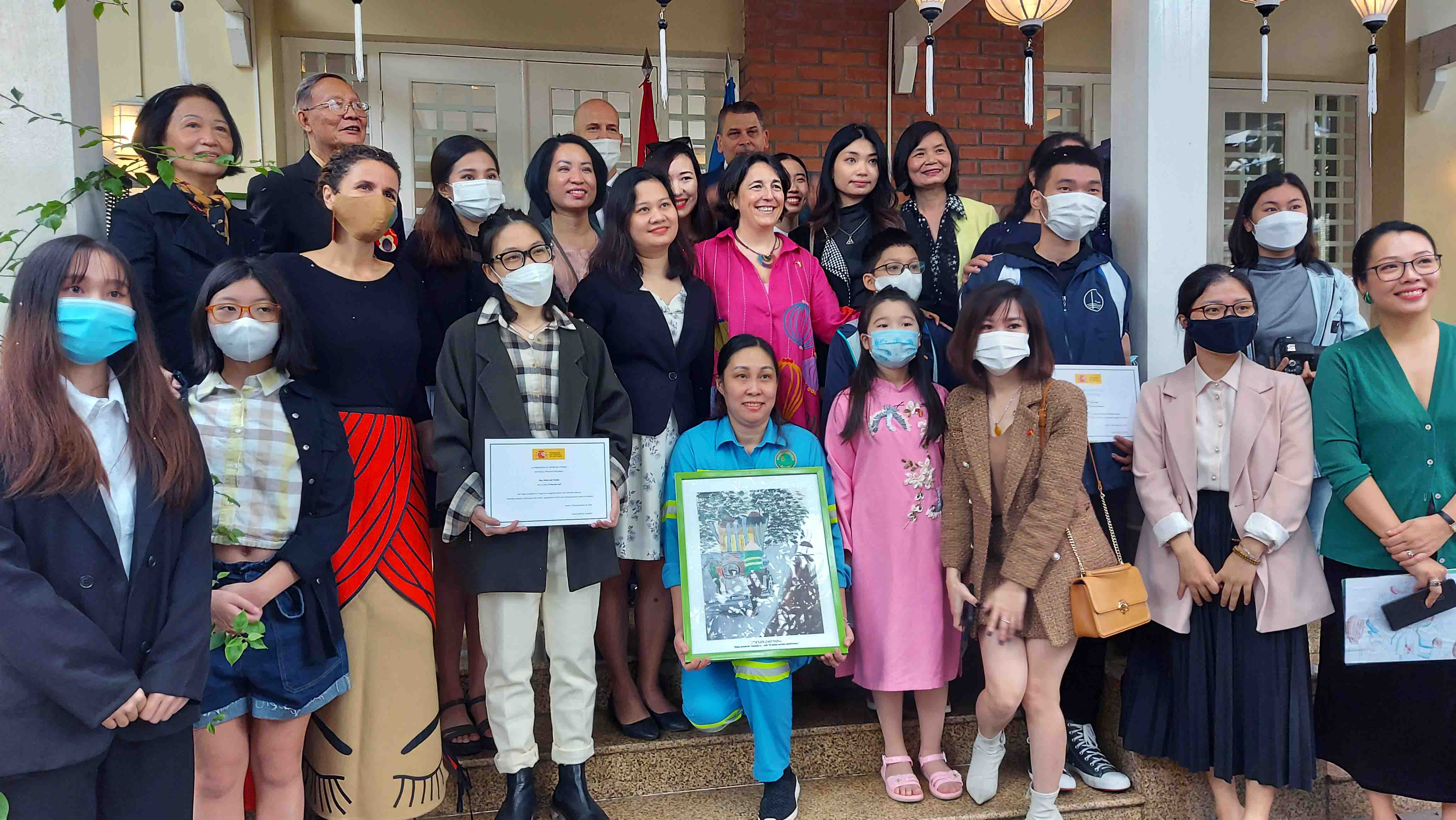 Entrega de premios para los ganadores de dos concursos para la promoción del idioma español en Vietnam. (Foto: Tuan Anh/VOV5) |