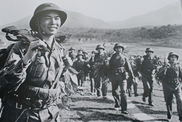 Soldados del Ejército Popular de Vietnam marchan hacia el Sur para luchar por