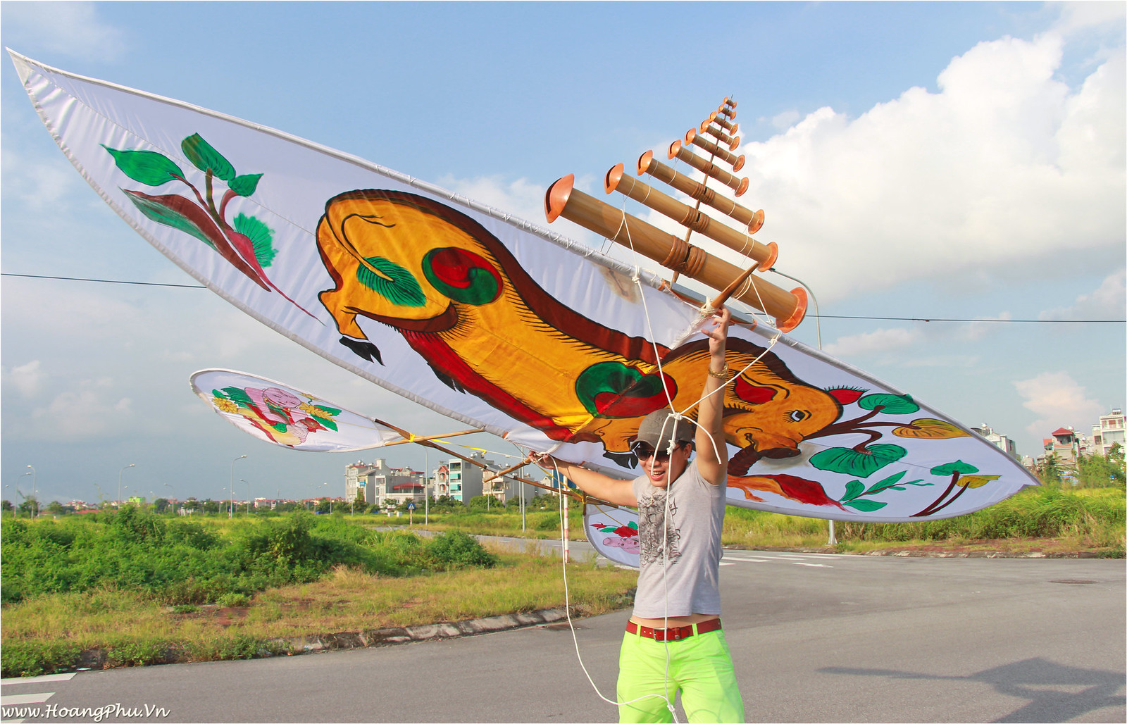 Querido amigo, las cometas con flautas se originaron en el delta del Río Rojo de Vietnam. Consta de dos partes principales, papalotes y flautas. Estas últimas van atadas a las cometas, y al volar hacia arriba emiten una melodía suave producida por el viento.