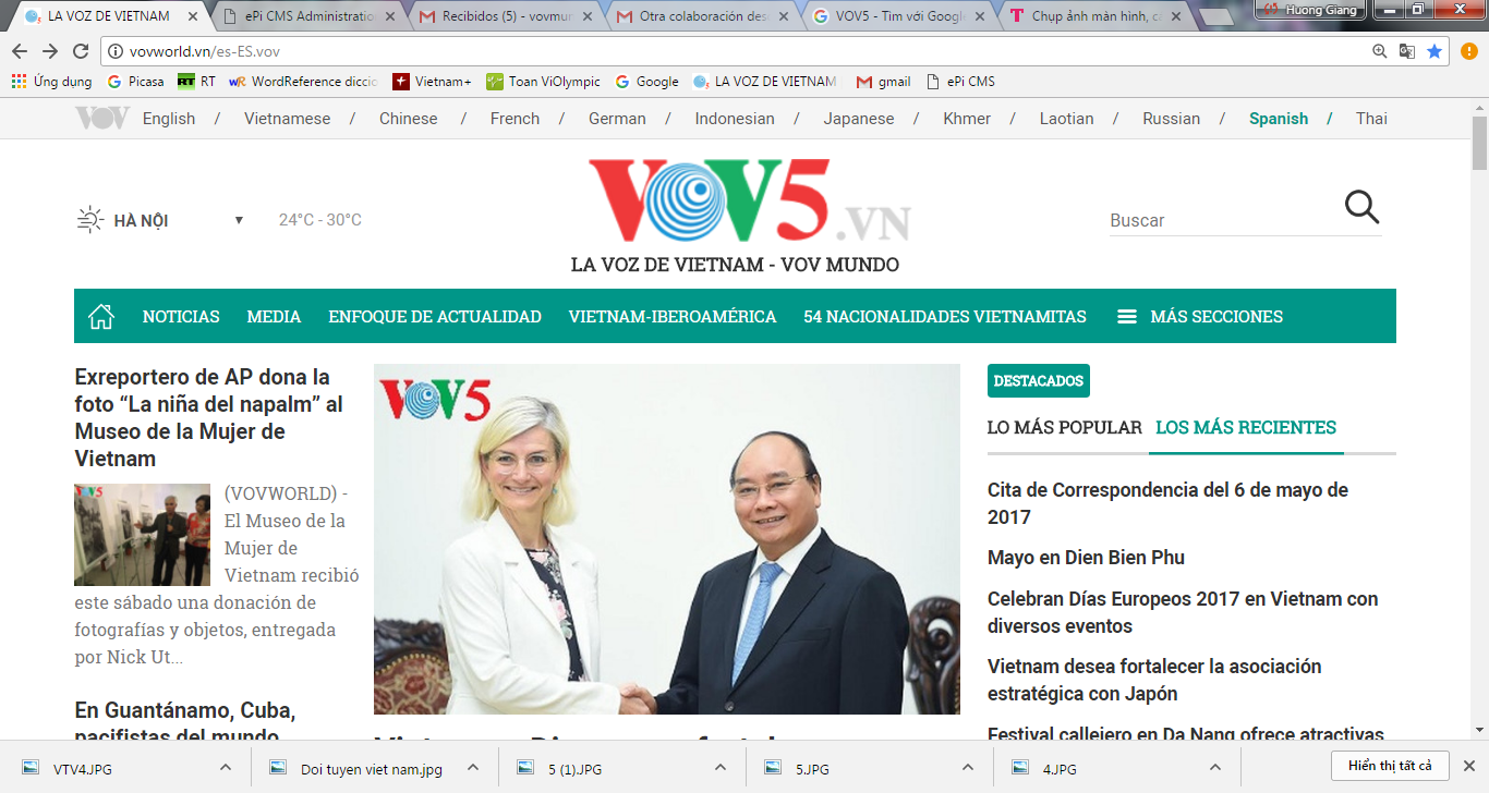 Nuestro oyente argentino comentó además que tiene la oportunidad de ver las emisiones en inglés de la cadena VTV4, de la Televisión Nacional de Vietnam, que son transmitidas mediante el satélite Hispasat y nos preguntó si este canal emite en idioma español. Lamentamos decirle que VTV4 cuenta actualmente solo con boletines informativos en vietnamita, inglés, francés, ruso y chino, pero esperamos que en su proceso de desarrollo con la consigna “Llevar los valores vietnamitas al mundo”, en el futuro incorpore un programa en castellano al servicio de uno de los sectores poblacionales más numerosos del orbe. Hasta la fecha, VTV4, junto a nuestro Canal de radio VOV5 que transmite en 12 idiomas, son dos de los medios de comunicación más importantes de Vietnam dirigidos al exterior para conectar a los compatriotas en ultramar y promover la imagen del país a los amigos internacionales.