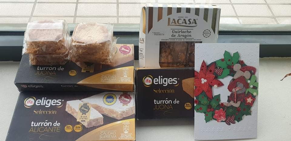 Los regalos y la tarjeta postal de Navidad y Año Nuevo que envían José Ignacio Cos Lezama y su esposa, Liliane, desde Bilbao, España. |