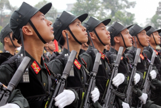 Soldados vietnamitas dispuestos a participar en el desfile militar el 30 de abril de 2015