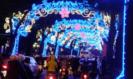 Por la mañana, todos los caminos de Hanoi están cubiertos por los alegres colores de distintos tipos de flores. Por la noche, las decoraciones iluminan no solo sus principales calles, como Dien Bien Phu, Trang Thi y Hang Khay, sino también las callejuelas y las zonas residenciales. Bùi Thị Hoa, quien reside en la calle de Hang Hom, en el Casco Antiguo hanoyense, manifestó: “Me siento muy contenta ante la llegada del nuevo año. Las calles están muy concurridas porque todo el mundo está comprando cosas para el Tet. Mientras, las flores de melocotón me dan la sensación de que el Nuevo Año Lunar está muy cerca y las luces multicolores de los ornamentos en las vías me parecen muy cautivadoras.”