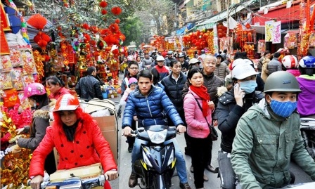 (VOVworld) – En estos días, el ambiente del Año Nuevo Lunar, o el Tet, ya es notable en las calles de Hanoi. Los habitantes de la capital vietnamita están entregados a los últimos preparativos para despedir el año viejo y recibir el nuevo. Las actividades de compra y venta ocurren en todos los rincones.
