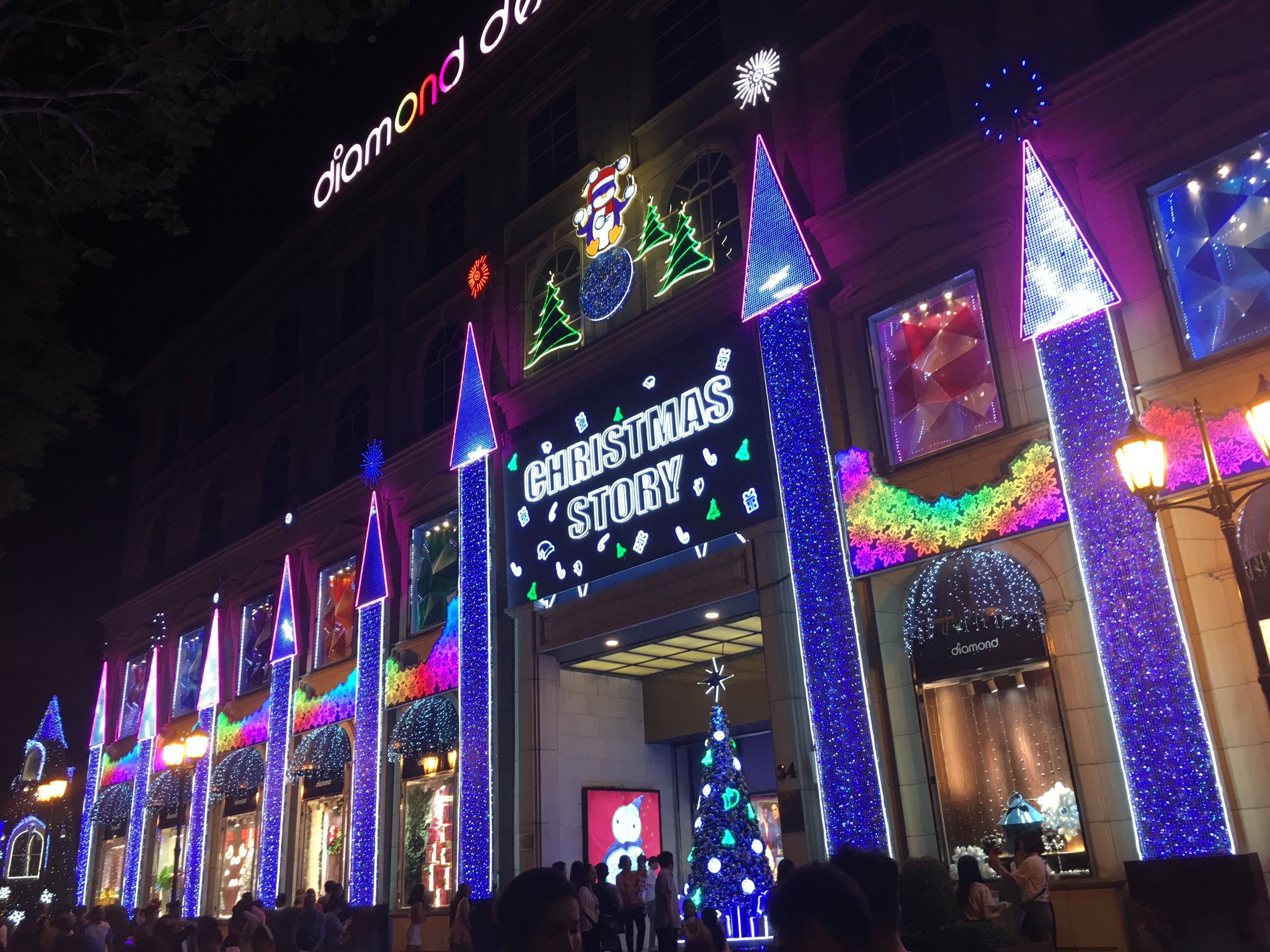 En Diamond Plaza, uno de los centros comerciales más concurridos de la urbe, muchos grupos de jóvenes y familias hacen colas para poder tomarse “selfies” con los árboles de Navidad de hasta 2 metros de altura instalados aquí. Este año, Diamond Plaza fue decorado con el tema “Christmas Story” (Historia de Navidad), con el azul como color principal. En toda su superficie, se colocaron cientos de árboles navideños de diferentes tamaños, sin embargo, el que se hizo con cientos de bolas azules y plateadas, situado en la entrada del lugar, es el favorito de los visitantes. Por la noche, este centro se ilumina con miles de bombillas y semeja un castillo de hadas.