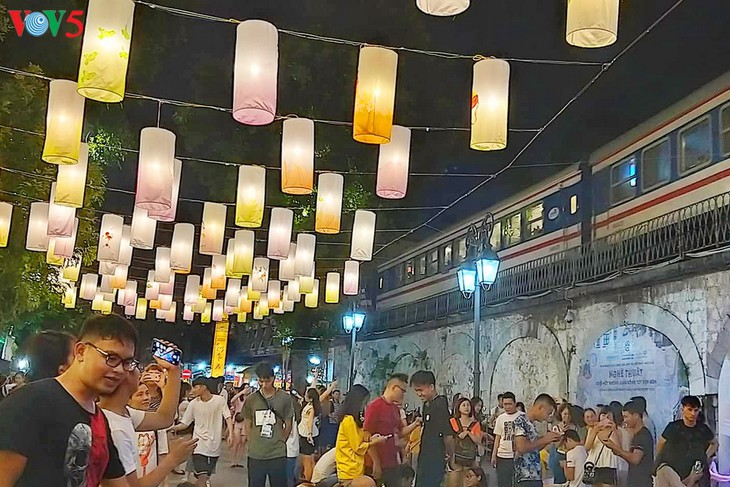 Engalanada por cientos de farolillos, la calle de Phung Hung parece otra diferente a lo habitual, y es más concurrida por la noche. Nguyen Thanh Tam, del distrito de Dong Da, comentó: “Qué alegría estar aquí para unirse en la elaboración de juguetes tradicionales! Ya sé varias maneras de crearlos”.