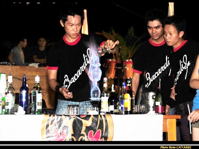 Unas 20 personas, que incluían a jóvenes y hombres mayores, se encontraban delante el bar del restaurante Spoor, en Hanoi. El bar, diseñado a la europea, exponía cientos de coloridas botellas de licores y jarabes de diferentes tamaños en el estante de madera decorado con luces parpadeantes. Los clientes, que dejaban inacabadas sus conversaciones, centraron sus miradas en los gestos atrayentes de Vuong Dinh Dinh, un guapo bartender con pelo amoldado con gel y vestido con una elegante camisa blanca y un corbatín. El joven vertía el ron en la coctelera de inox desde la altura de… un metro. Tras echar unos cubos de hielo en el recipiente, lo agitaba a un ritmo armonioso, provocando agradables sonidos al oído. De repente, encendió los corchos de cuatro botellas de color verde, con las cuales hizo malabarismos en una actuación que fascinaba a todos sus espectadores. Muy pronto, los cocteles de tres capas de bebidas decoradas con cerezas se ofrecía a los asombrados clientes, que apreciaban los tragos dulces y refrescantes en su paladar, una vez satisfechos oídos, vistas y olfatos. Pero antes de llegar al nivel profesional de hoy, el bartender Vuong Dinh Dinh experimentó frustraciones. “Creo que en la coctelería, uno puede aprender mucho de sus amigos y en especial de sus clientes, quienes proceden de varios países y llevan consigo culturas muy diversas. Recuerdo que una vez, un cliente extranjero me pidió un mojito cubano, que hasta entonces solo conocía en teoría. Entonces me arriesgué a prepararlo y por supuesto la bebida no complació a mi cliente quien me dijo francamente que aquello no parecía un mojito. Pero yo tuve mucha suerte porque ese hombre trabaja en la coctelería y en seguida me instruyó de como hacer un mojito auténtico. Es un recuerdo que nunca olvidaré.”