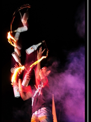 Un bartender presenta sus técnicas malabares con una coctelera y